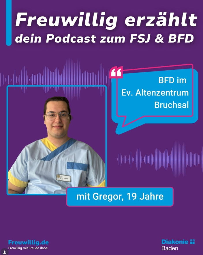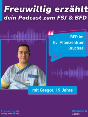 In dieser Folge erzählt Gregor, 19 Jahre, von seinem BFD im Evangelischen Altenzentrum in Bruchsal. Für ihn war der BFD die ideale Möglichkeit, die Fachhochschulreife zu erlangen und gleichzeitig praktische Erfahrungen in der Altenpflege zu sammeln…